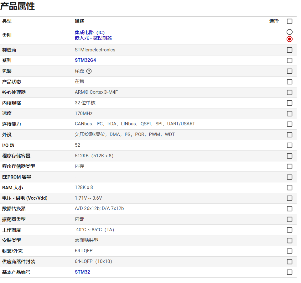 制造商產品編號: STM32G474RET6