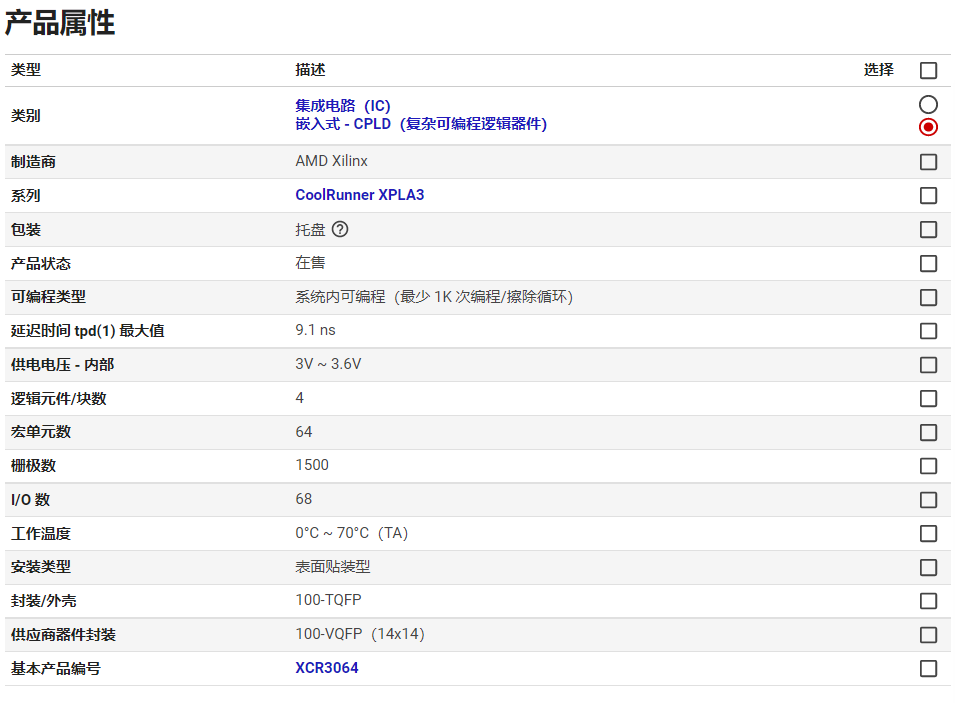 描述: IC CPLD 64MC 9.1NS 100VQFP