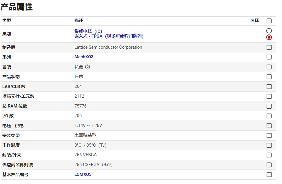 描述: IC FPGA 206 I/O 256CSFBGA