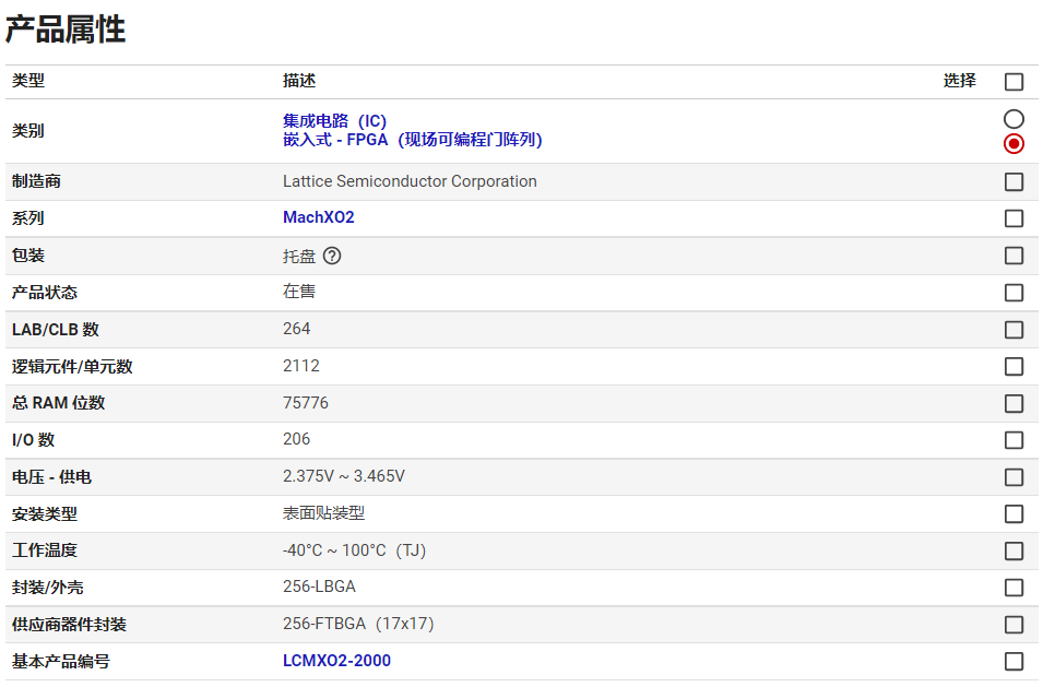 制造商產(chǎn)品編號: LCMXO2-2000HC-6FTG256I