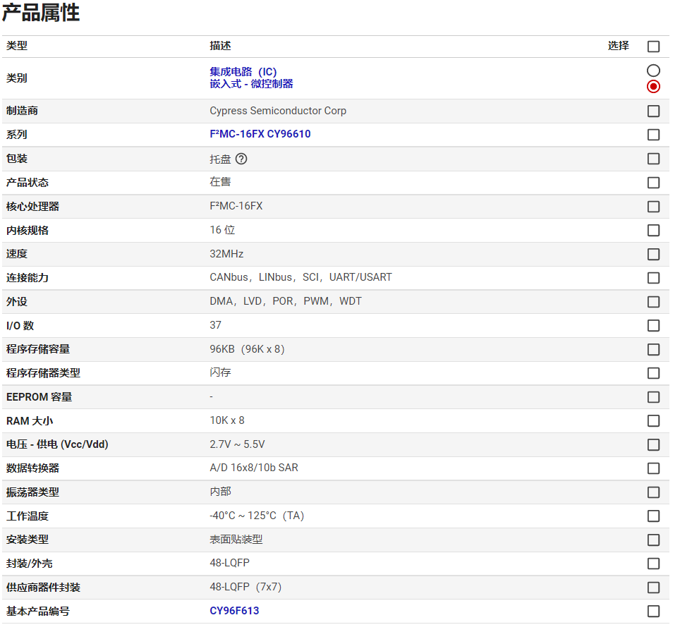 制造商產品編號: CY96F613RBPMC-GS-UJE1
