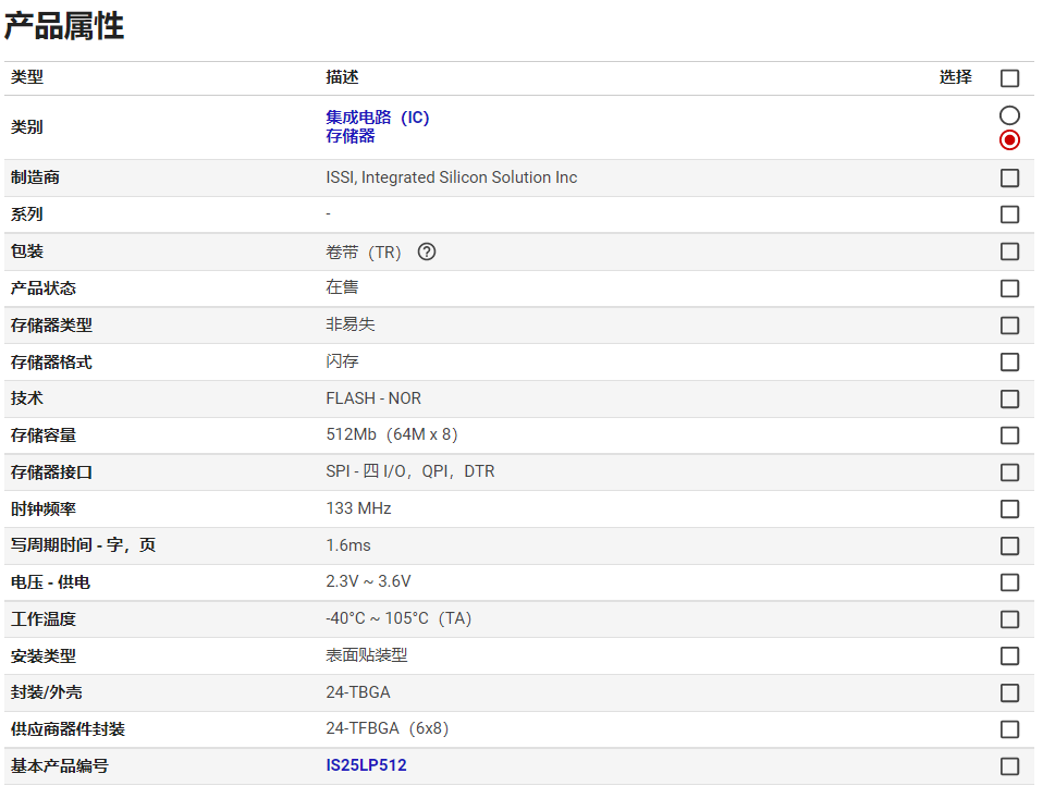 制造商產(chǎn)品編號: IS25LP512M-RHLE-TR
