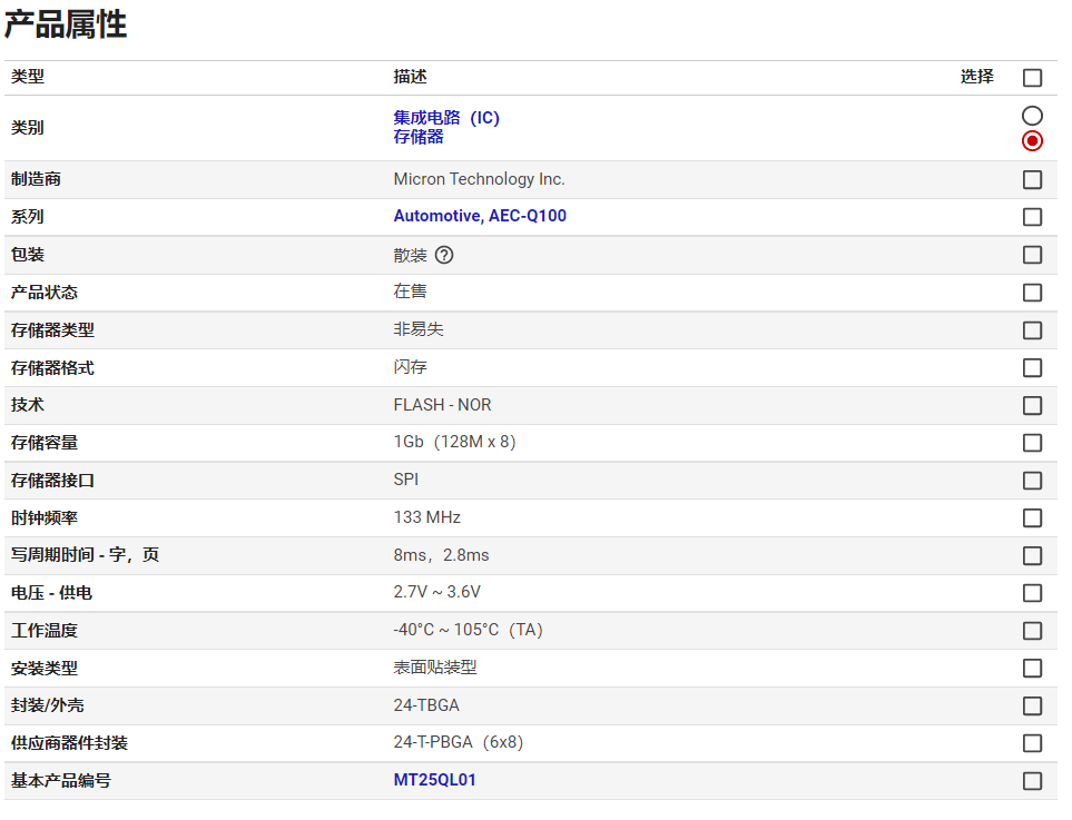 詳細描述: FLASH - NOR 存儲器 IC 1Gb(128M x 8) SPI 133 MHz 24-T-PBGA(6x8)